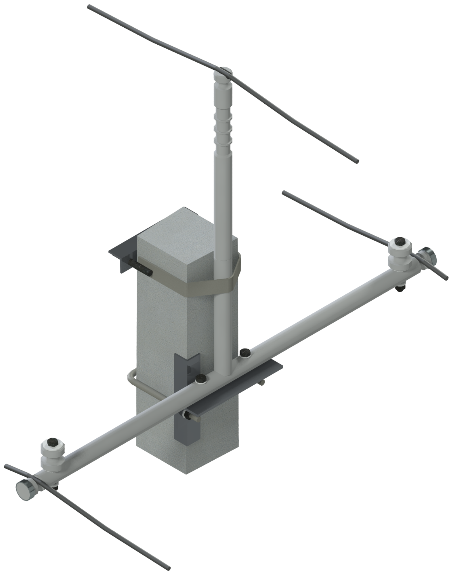 Траверса композитная для крепления трёх проводов. В горизонтальной части траверсы провода крепятся к штыревому узлу или в паз спиральными вязками, возможно двойное крепление провода в населенных пунктах.